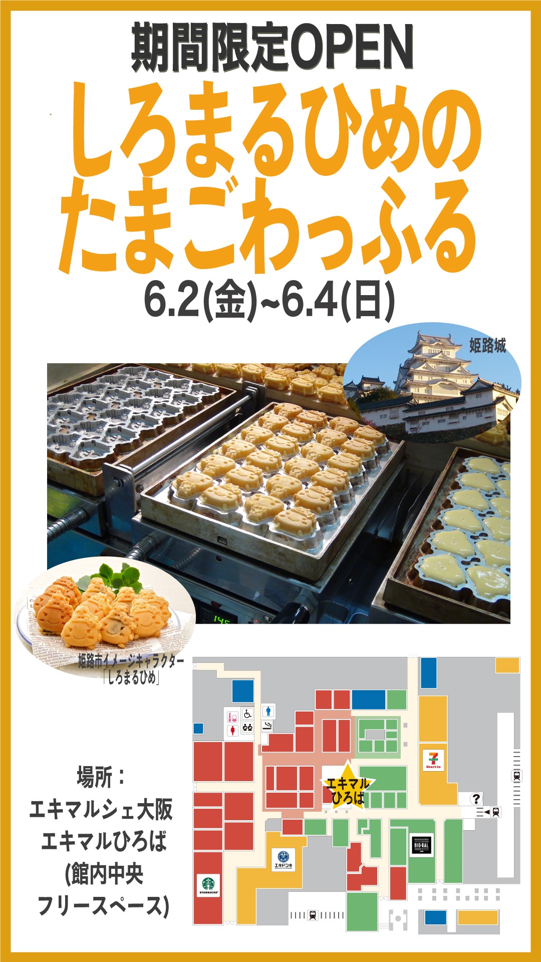 Dans l'Event space (espace libre central dans le hall) "しろまるひめのたまごわっふる",
