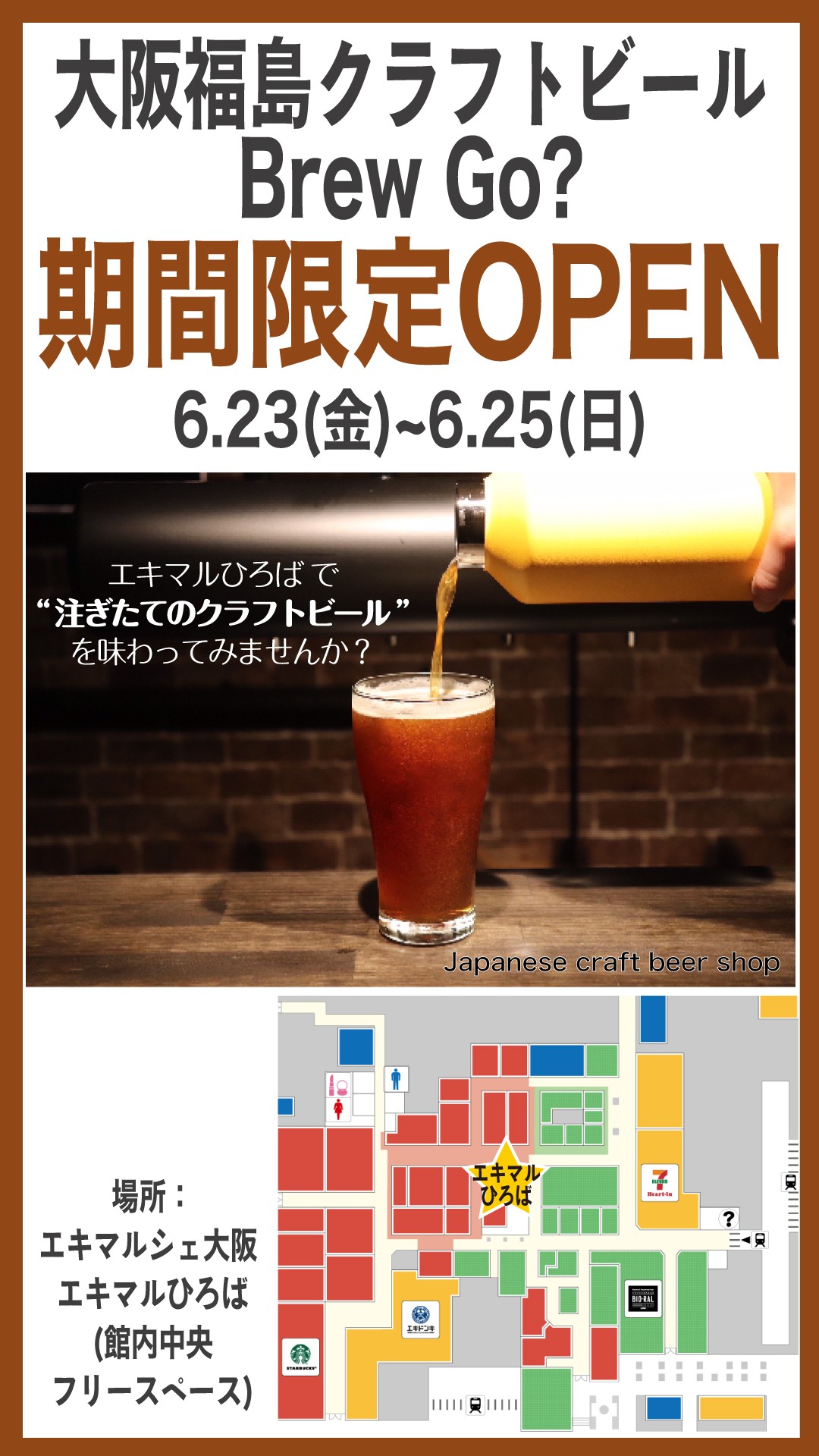 Fukushima, la Bière "de bière d'artisanat d'Osaka Va ?" ouvre un magasin dans "l'Event space" spatial libre central dans le hall de nouveau seulement dans la période de vendredi, le 23 juin à dimanche, le 25 juin !