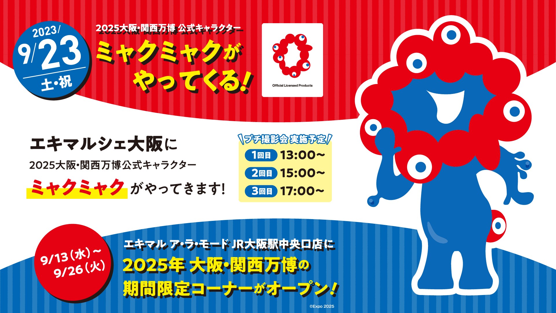 Avec cela, Osaka, le caractère de formule d'Exposition internationale de Kansai "ミャクミャク" vient à "l'eki marche Osaka" pour jouer à 9/23 (le sol/célébration) !