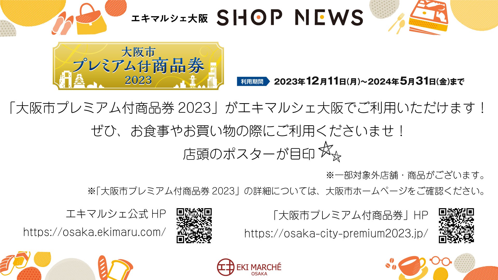 "Le certificat de cadeau 2023 avec la prime d'Osaka-shi" est disponible dans l'eki marche Osaka.