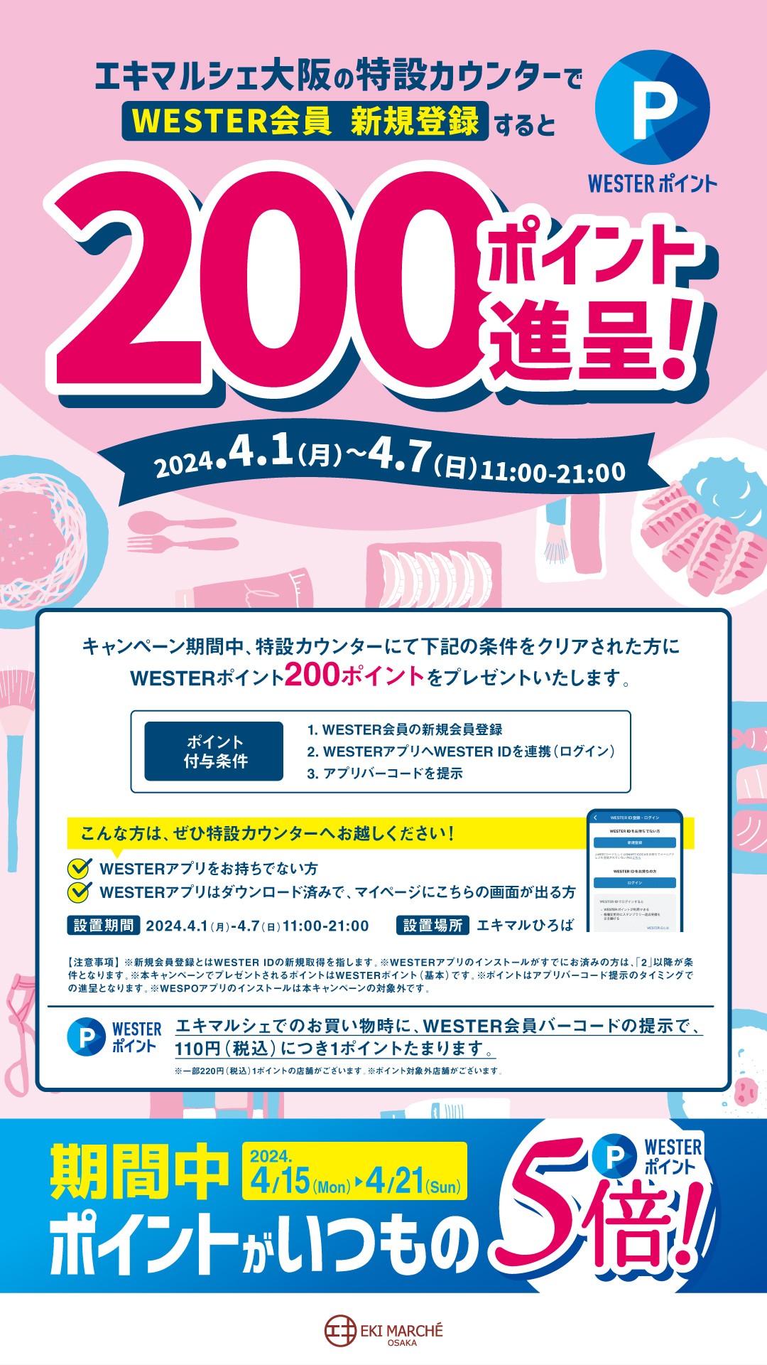Je présente 200WESTER le point sur place quand je vous fais inscrire dans un nouveau venu de membre WESTER rencontrant la cabine pour vous informer de dans l'Event space contenant pendant la période de lundi, le 1 avril à dimanche, le 7 avril.