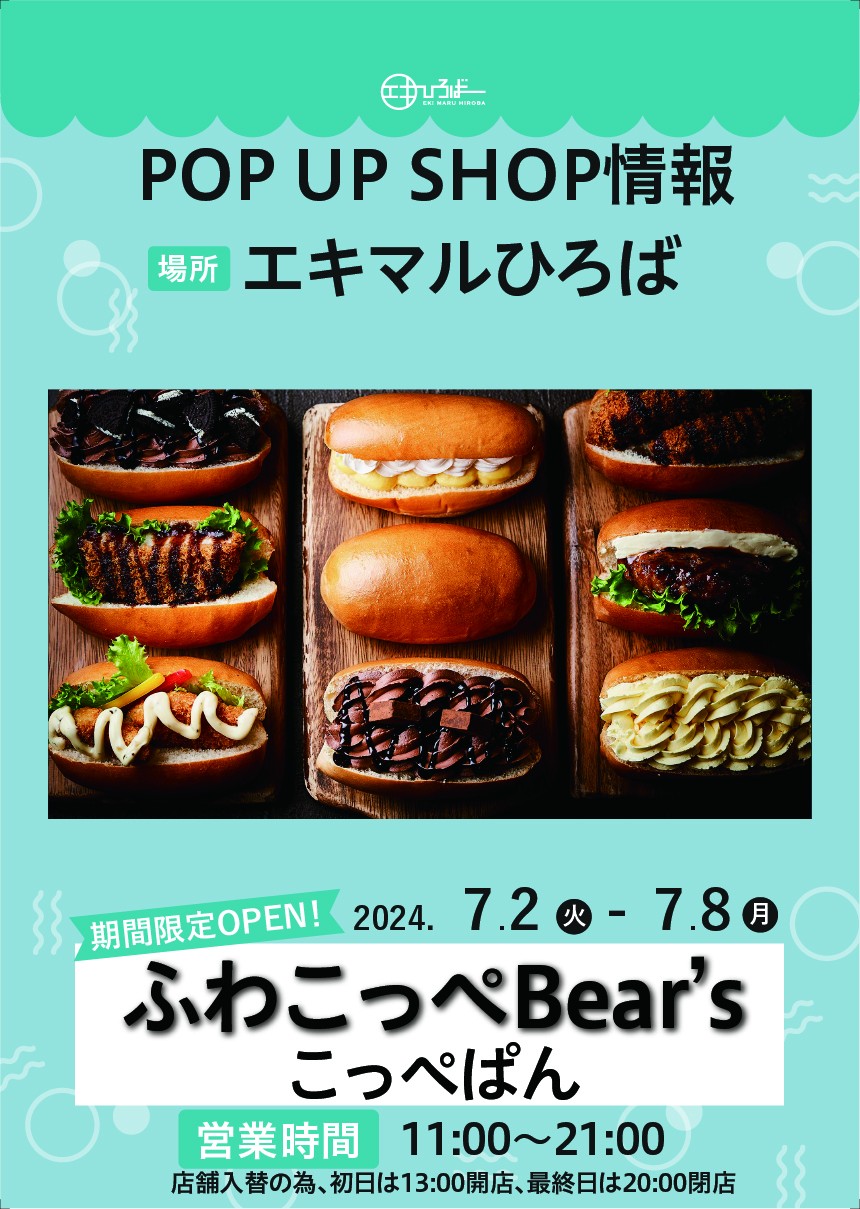 L'Ours de ふわこっぺ est OUVERT dans l'Event space seulement dans les périodes du 2 juillet au 8 juillet !