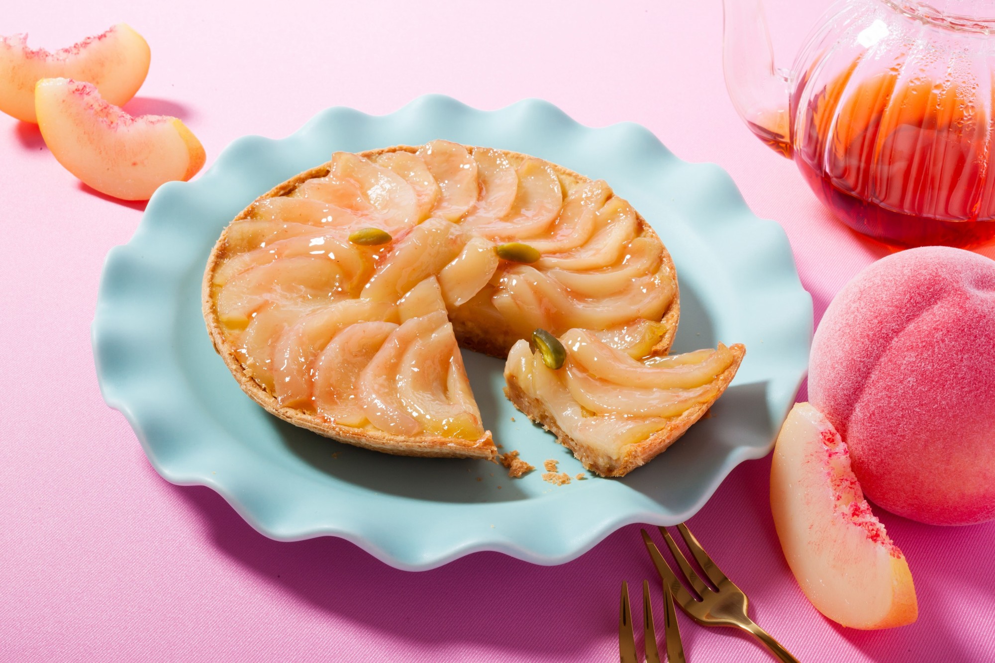 🍑 qui vend le produit qui se ferment dans le charme de la pêche en incluant la tourte de pêche et le sable de beurre