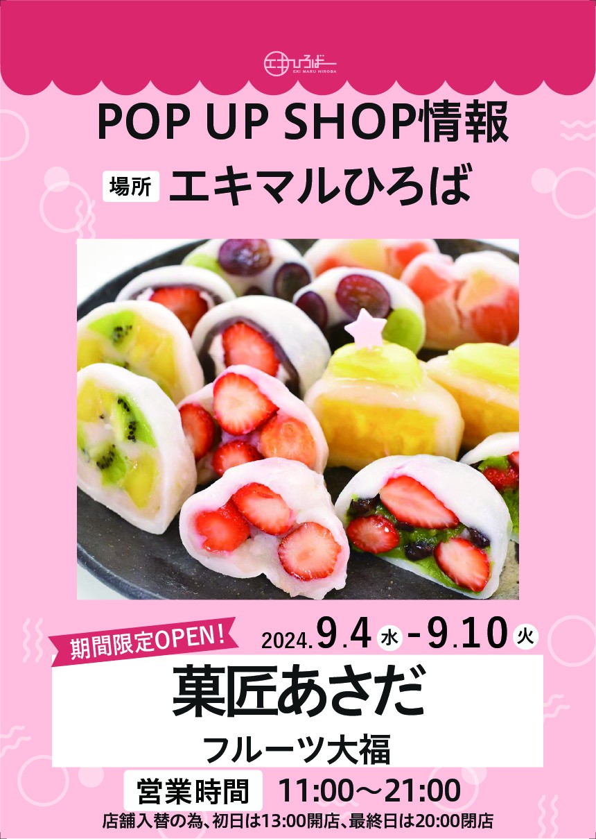 "菓匠 あさだ" est OUVERT dans l'Event space seulement dans les périodes du 4 septembre au 10 septembre !