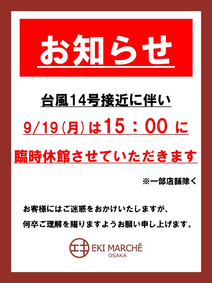Annonce de tous les bâtiments fermeture temporaire provoquée par le typhon N° 14 (9/19)