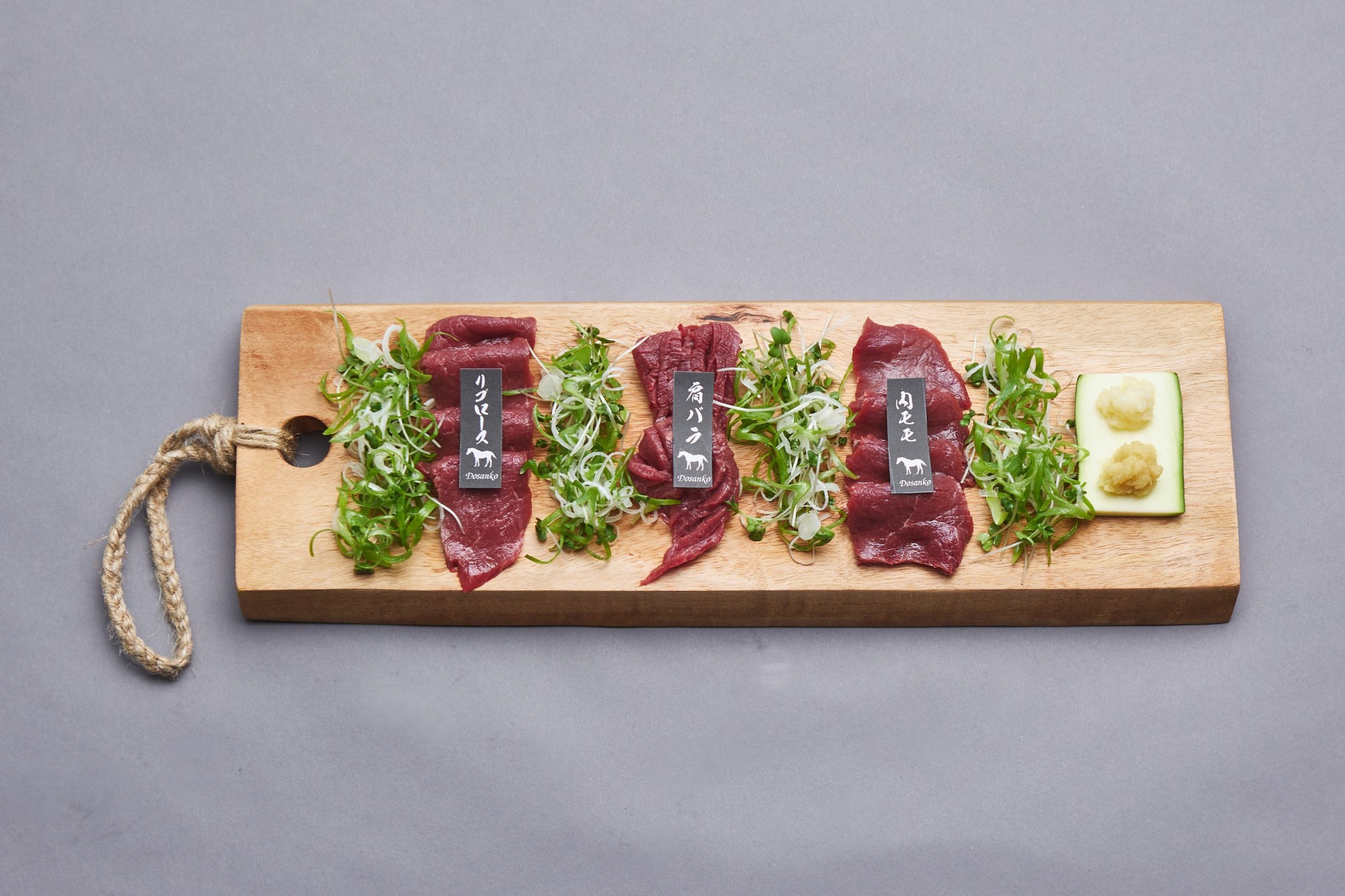 J'ai recueilli la nourriture délicieuse de Shinshu en incluant la "marchandise de bandit" "basashi" qui était populaire pour Nagano.