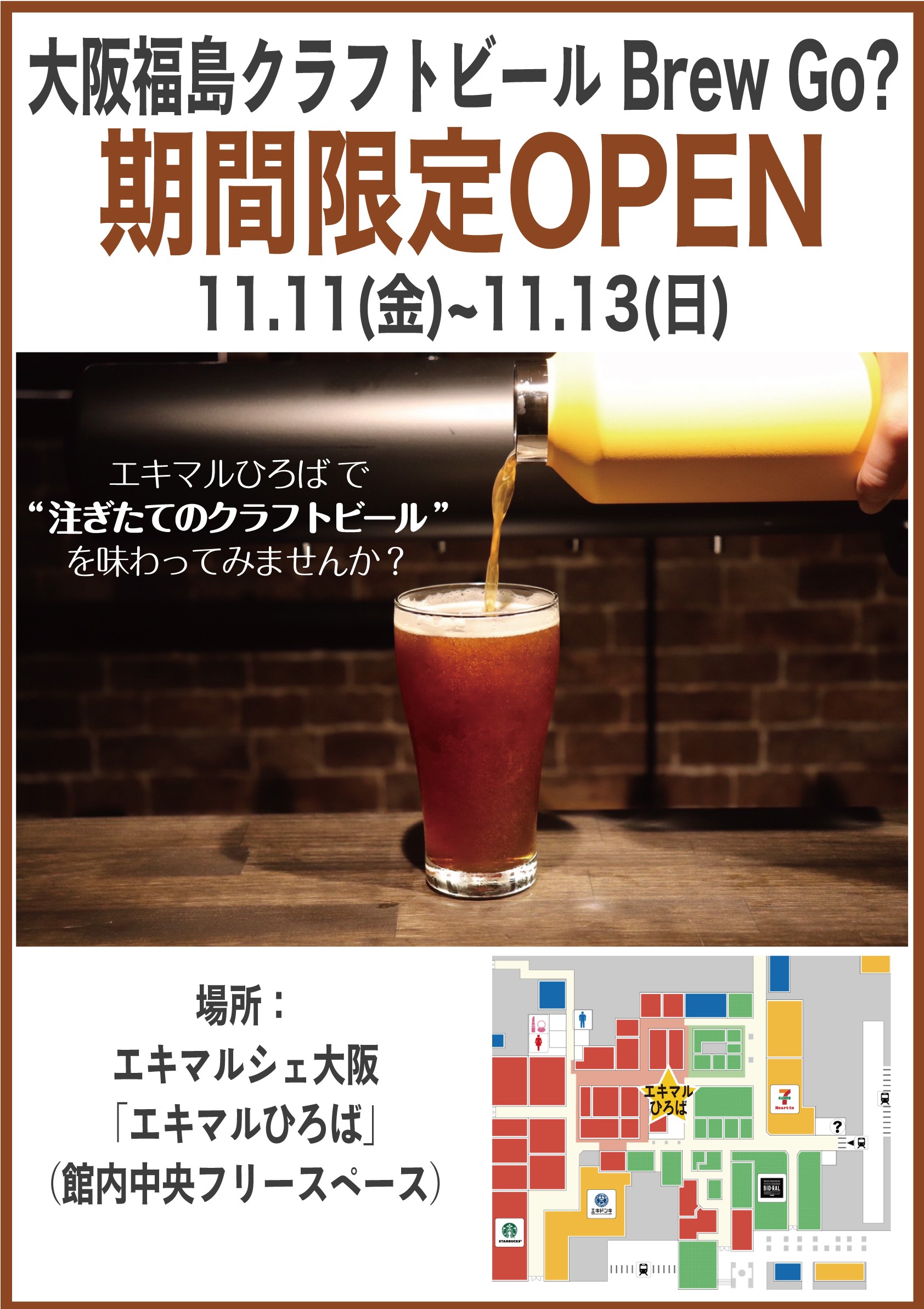 Fukushima, la Bière "de bière d'artisanat d'Osaka Va ?" ouvre un magasin dans "l'Event space" spatial libre central dans le hall de nouveau seulement dans la période de vendredi, le 11 novembre à dimanche, le 13 novembre !