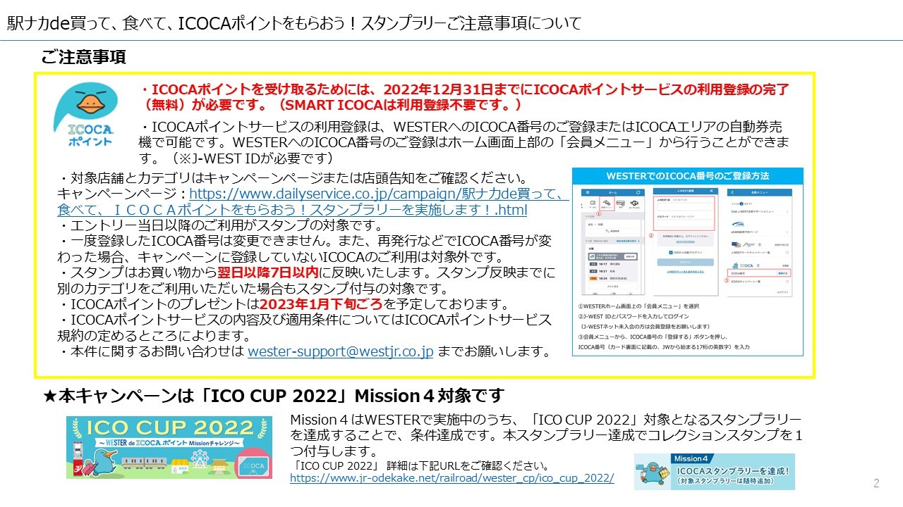 ※L'achèvement de l'enregistrement d'utilisation (libre) du service de point d'ICOCA est nécessaire d'ici samedi, le 31 décembre pour recevoir le point d'ICOCA.