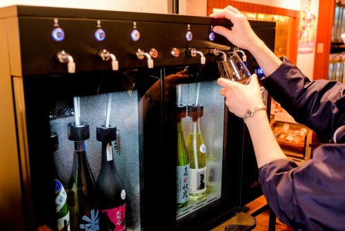 J'installe le serveur de saké du style de soi et peux avoir 54 sortes de saké régulier font une dégustation d'un air détaché.