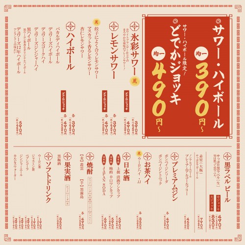 Le cocktail aigre fournit le schooner de capacité 1.7 fois à 429 yens uniformes (inclus de la taxe) pour 539 yens (inclus de la taxe).