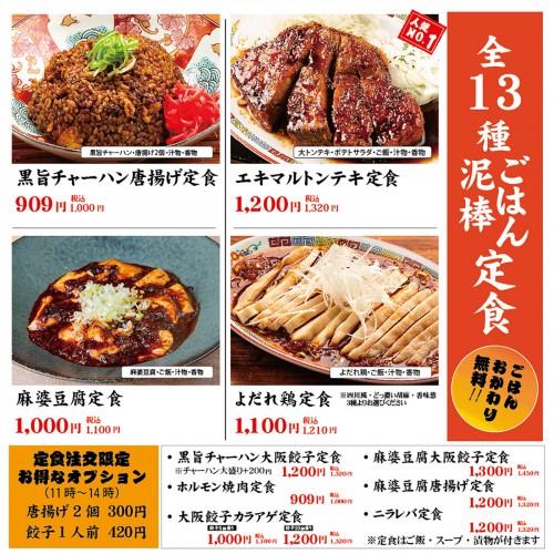 Un morceau de nourriture chinoise d'article est 218 yens (inclus de la taxe) - la préparation ! L'étiquette noire Sapporo que la bière correspond à la nourriture chinoise. La boulette de pâte faite à la main que l'ail a travaillé pour une étiquette noire est la plus populaire ! Je recommande aux ciboulette chinoises standard chinoises leva et les crevettes roses le Chili et le riz frit noir original◎