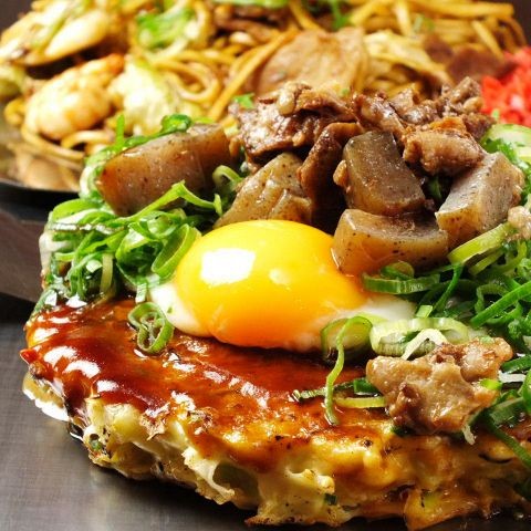 Okonomiyaki, tir de poireau, plats rôtis de la salive