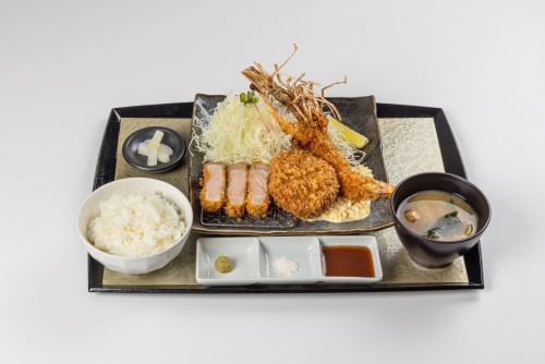 C'est un repas de jeu pour manger et le rencontrer et être capable d'apprécier une extra-grande crevette rose frite exceptionnelle et la côtelette de filet qui peut goûter une croquette crème fondant complètement avec le plein du goût de crevettes roses, la graisse particulière à un cochon de beauté de thé et à un goût de la viande avec un plat. Appréciez-le s'il vous plaît certainement.