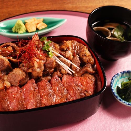 C'est la combinaison 重 où le riz de la vache galbi que j'ai conservé dans du vinaigre avec le bifteck auquel je le fais cuire à un moyen d'expression rare sur une plaque en fer et relève et les avances de sauce salées et douces.