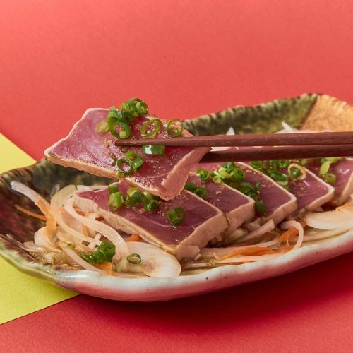 Okinawa fier d'une des meilleures prises de poisson de thon dans le pays est le ciel de thon aux gens dans le fait de savoir. Ayez "le thon coupé" qu'un thon frais et un Agrume clair depressa ponzu le vinaigre sont excellents à une affinité avec les Brasseries Orion !